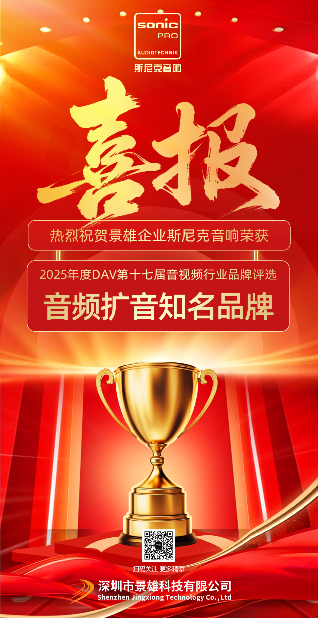 深圳市景雄科技有限公司成立于2011年,是国内一家著名声、光、视、讯集成产品供应商及自主产品设计研发生产商,是一家集研发、生产、销售和服务为一体的“专精特新企业”、“国家高新技术企业”、“双软认证企业”、“创新型企业”和“科技型企业”,也是国内声光视讯行业首家取得“知识产权管理体系(贯标体系)认证”的企业....