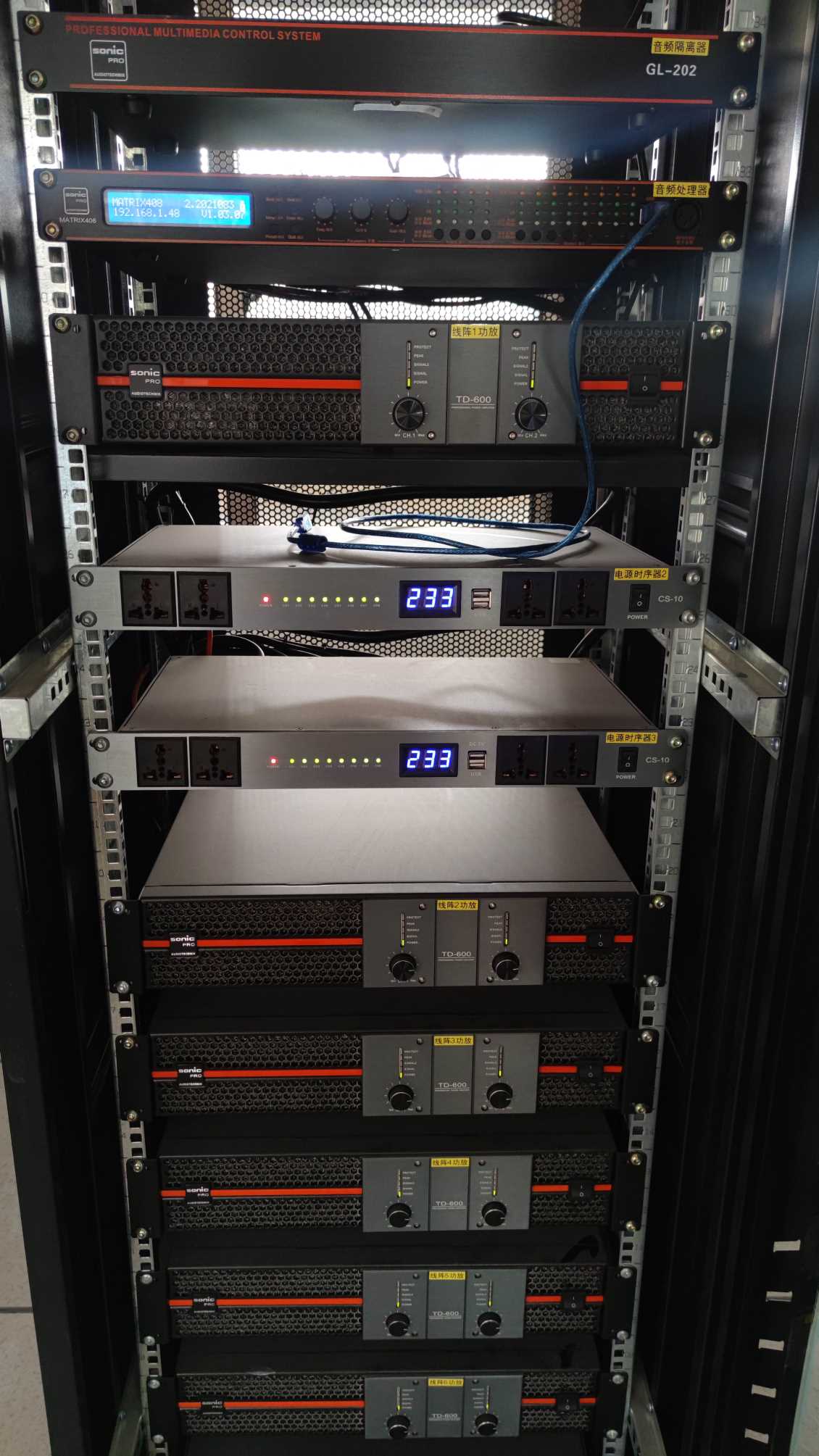 除此之外,我们还配置了SONIC PRO(斯尼克音响)MATRIX408数字音频处理器,其功能强大的DSP处理模块能最大保证声音的还原度,同时管理软件还可通过USB控制,实现远距离实时控制多台设备级联。
