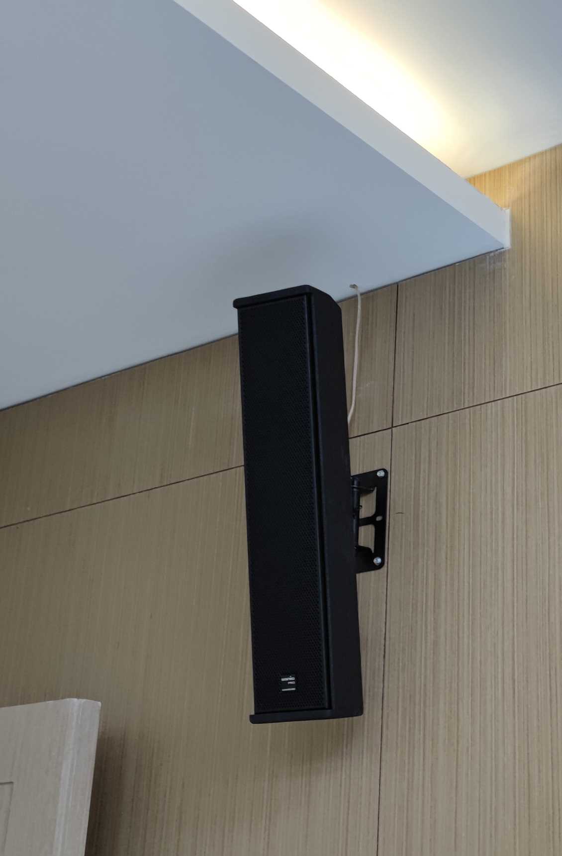 除了10楼党委会议室客户提出需要保持美观而采用CX系列音箱隐藏安装外,其他场合我们搭配的都是TH系列音柱。木质箱体让它的声音更加纯净。