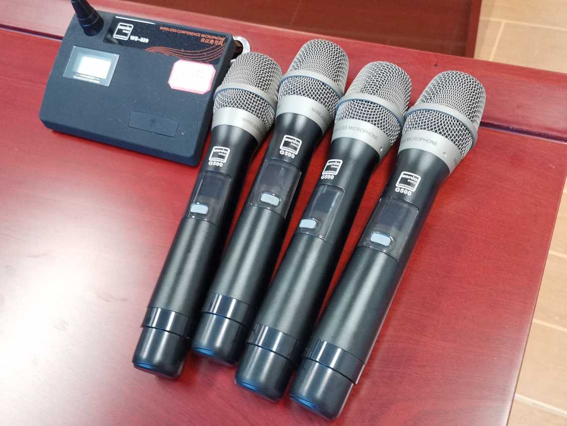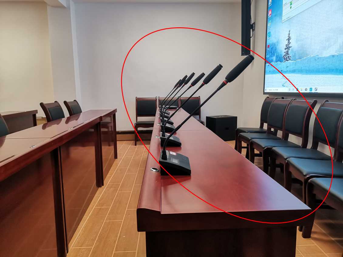 我们配置了四套八只无线鹅颈话筒,为了满足流动发言的使用需求,配置了两套一拖二的无线手持话筒。满足各类会议报告的使用需求。