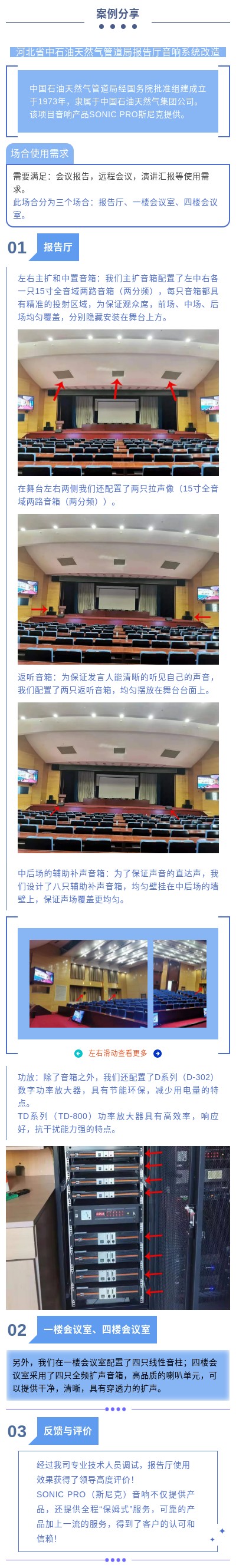 河北省中石油天然气管道局报告厅音响系统改造 行业:能源 应用:报告厅 地区:河北 访问次数:66 案例分享/河北省中石油天然气管道局报告厅音响系统改造 - END - 不同的搭配,不同的效果 适应不同的场合 景雄企业专注产品的创新和推广 倡导音视频数字网络化 系统化技术新理念 国家高新技术企业 知识产权贯标企业 双软认证企业 十大专业音响品牌 十大创新音响品牌