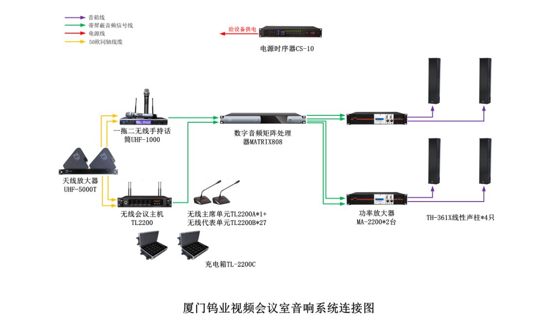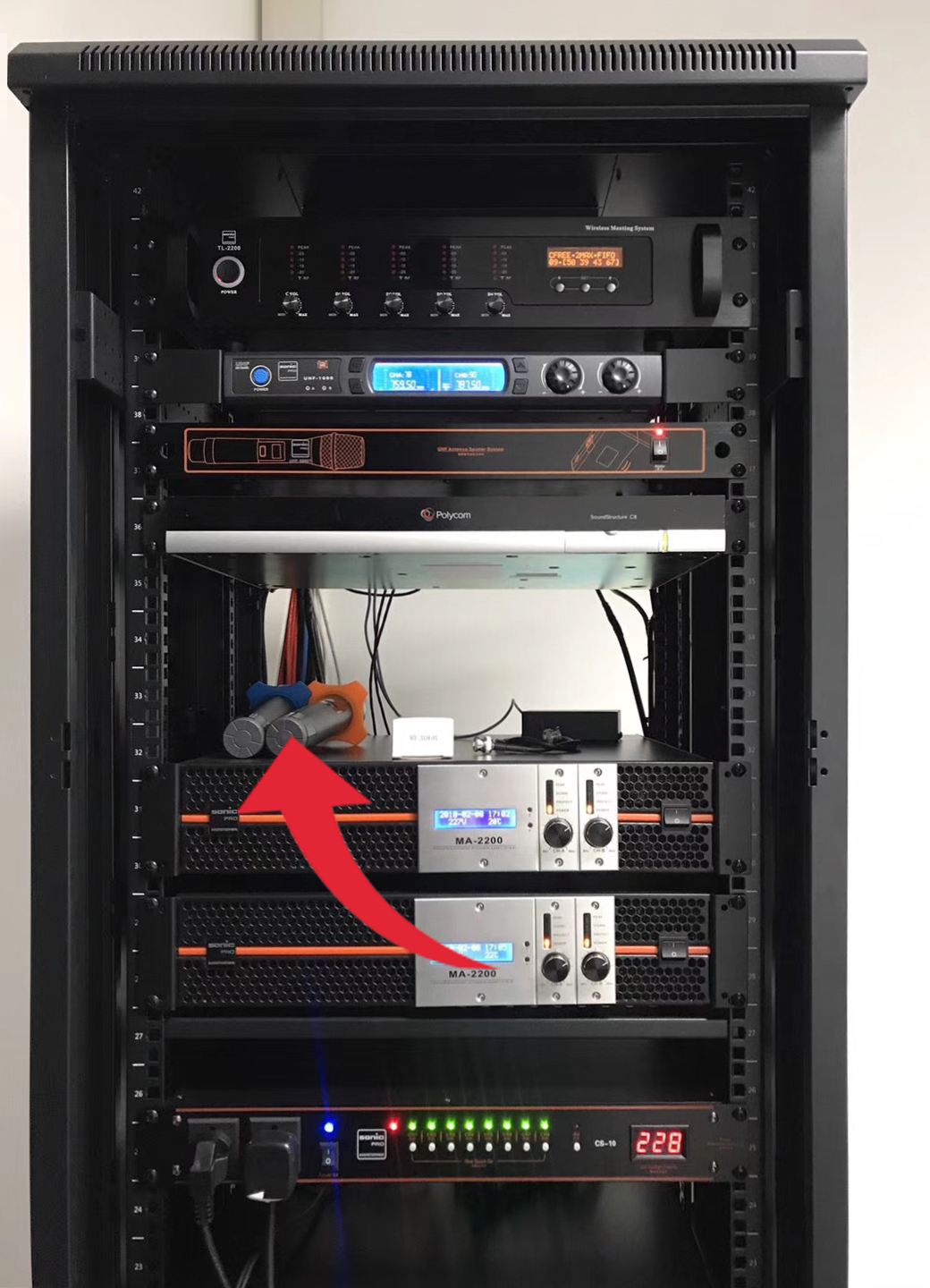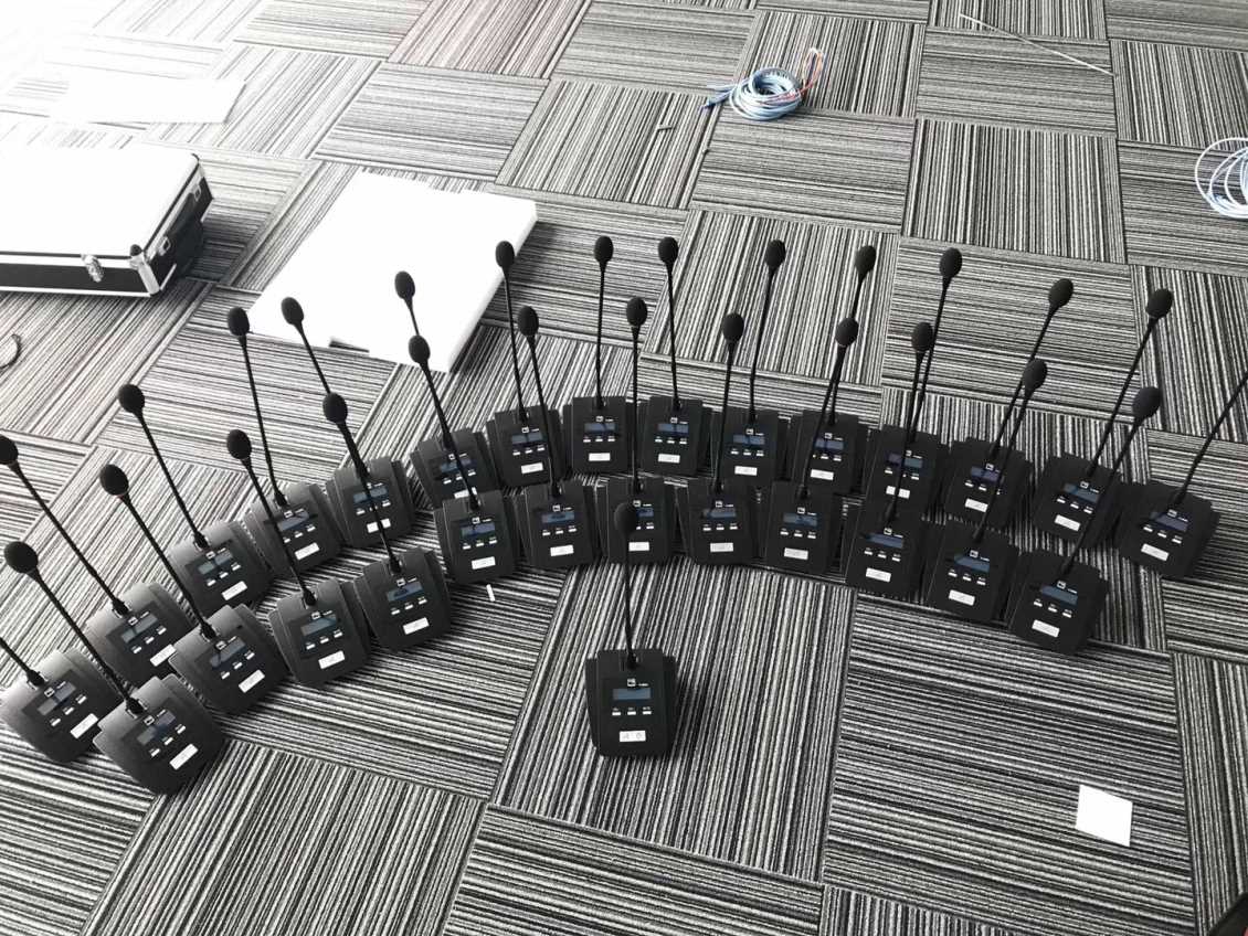 音源:我们配置了一套开会用的手拉手会议系统,流动发言使用的无线手持话筒,还配置了天线放大器,可以解决无线话筒容易受到、环境复杂、接收距离、电磁干扰、等因素导致无线话筒接收信号不稳定的问题。