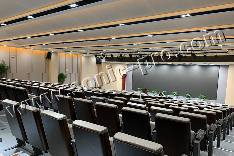 服务于声音艺术的音响系统设计的核心目标,是实现高质量声音重放和还原。科技不断进步与发展,新技术层出不穷,供选择配置的设备名目繁多,功能各异,在满足设计要求的前提下,应该使管理者和操作者的工作更简单可靠。因此,坚持人性化设计是我们的基本设计理念。我们所设计的这套方案需满足一下要求:各个位置无明显回声、颤动回声和声聚焦等音质缺陷;系统具有良好的传声增益指标,不产生明显的声反馈;音质自然传真,保证各个观众位置有一致的频率响应特性;音响扩声系统扩声涵盖范围均匀覆盖观众区域。根据场所的需求,在音箱的选用上,采用TZ系列音箱,它有十分灵活的设计方式,既适用于固定安装,也适用于移动演出,适合表演舞台主扩声,补声或者监听的应用.方便吊装。除TZ系列外,还采用SUB系列低音音箱,SUB低频音箱能提供干净、深沉、具有爆发力的低频声音效果。功放采用MA系列,独特的LCD液晶工作显示面板设计,监控显示工作温度、工作时间、工作电压,为音响师判断设备工作状态提供可靠数据。周边采用MX16C专业调音台、GL-202音频隔离器、AC08效果器、DGL-2408反馈抑制器、AC03均衡器、CS-10电源时序器。音源部分采用UHF系列无线话筒,采用最新红外线自动对频技术,及话筒固定编组功能,更易于设定和操作,使用更简便。