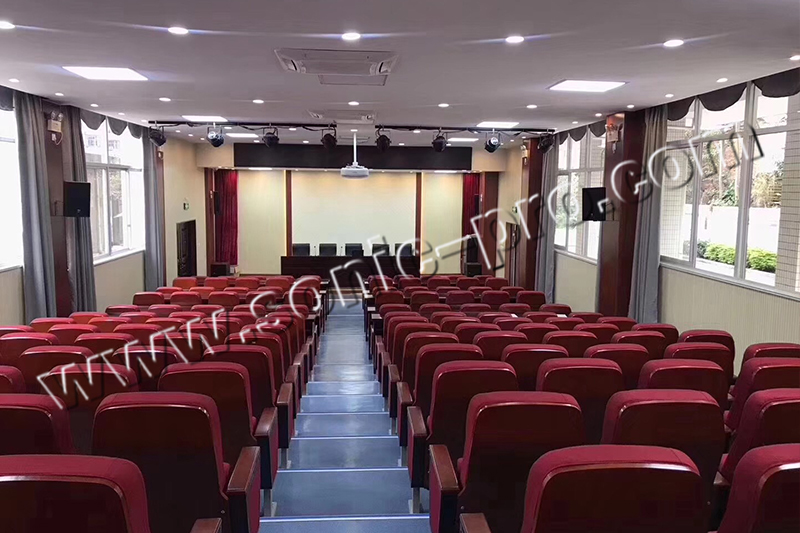 多功能报告厅主要进行语言人声信号的传输兼顾其它影音资料音频信号的播放,在设计时重点考虑扬声器的分布以及声压覆盖的均匀,系统相互间相互干扰的处理。做到各种音频信号播放清晰不混浊,并且高、中、低声场明晰。