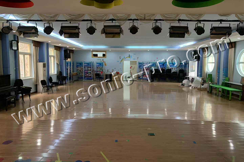 此次设计的改造项目为该幼儿园多功能厅音响系统,由于原系统使用年限较久,系统线路老化,杂音、电流声比较严重。用户希望实现智能化,一键式操作,能用IPAD无线控制系统。经过我司专业工程师现场勘查之后,给出合理的配置方案:主扩15寸音箱,搭配相应功放;