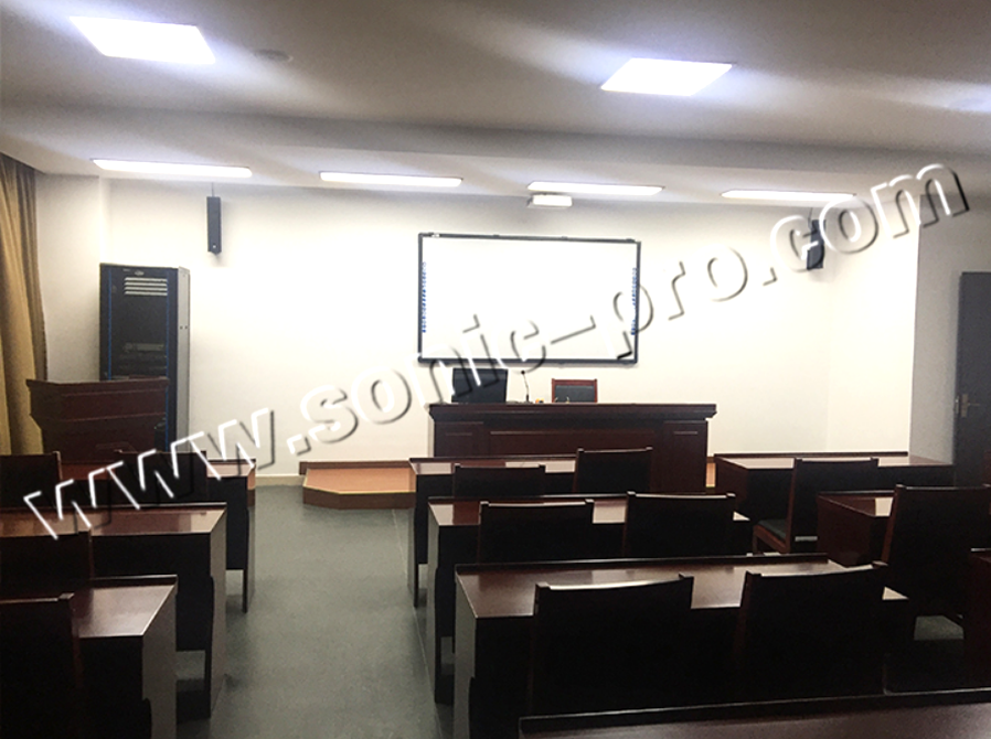 此次项目涉及该学校的多功能厅、阶梯教室、大教室、多媒体教室、会议室、户外操场等多个场所。会议室主要用于平时的开会和一些小型的报告等,考虑到会议室作为一个交流和学习使用较多的场所,甲方要求会议系统需要做到声音自然清晰、系统运行稳定、功能完善和使用高效。