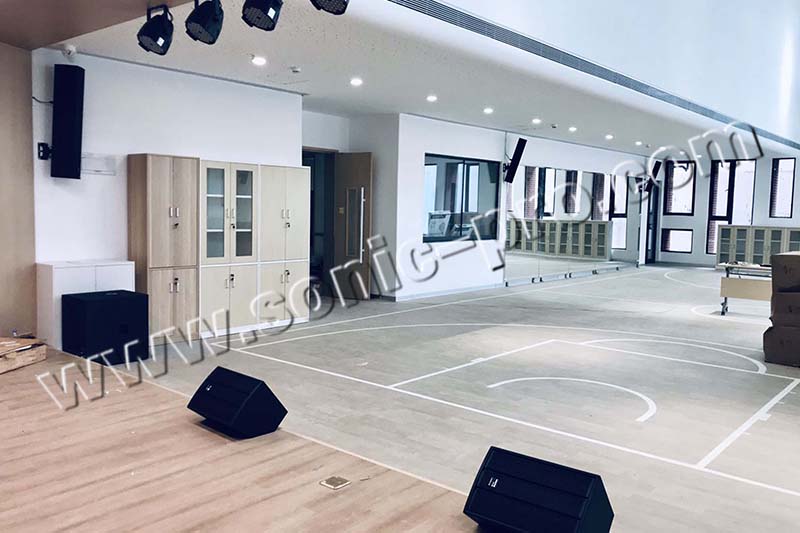 活动室,需要兼顾各类会议及文娱活动,我们采用立体声扩声方式,能够完整的覆盖整个观众区。听众区内声压分布均匀,系统具有足够的反馈前扩声增益。