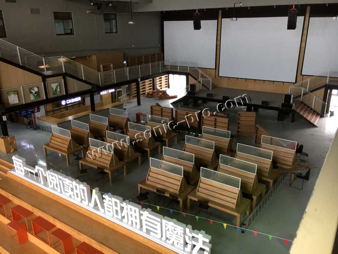 ? ? ? ?凭借客户的信赖和业界的优异口碑SONIC PRO(斯尼克)音响荣幸成为其中个性鲜明的落地可登台背景大书架的扩声系统供应商,也为合肥瑶海区建设自己的图书城贡献了一份力量!