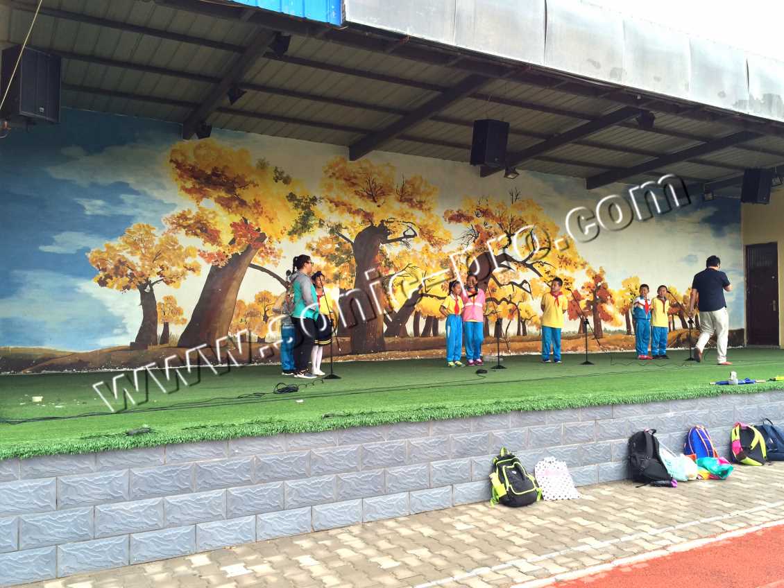 阿拉善六小校方表示操场的音箱扩声优于期待效果;