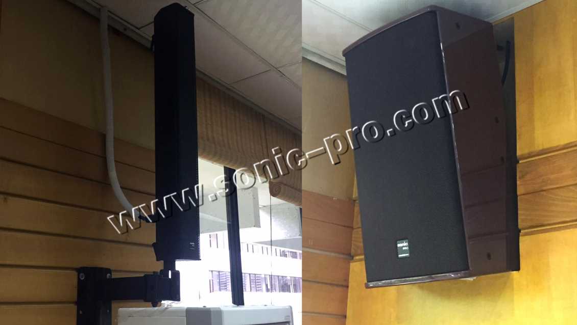 主扩声采用钢琴烤漆工艺的TF-12音箱*2,辅助采用8只线性音柱TH-803,整个音箱安装简介大方。功放则全部采用MA系列功放加持。本方案最大的特色就是摒弃了传统配置调音台、操作不便的问题。各配置1台MATRIX1616矩阵处理器,能实现混音、处理功能,内置反馈抑制器,支持多种国际通用的数字音频传输协议,可通过手机、IPAD无线控制。