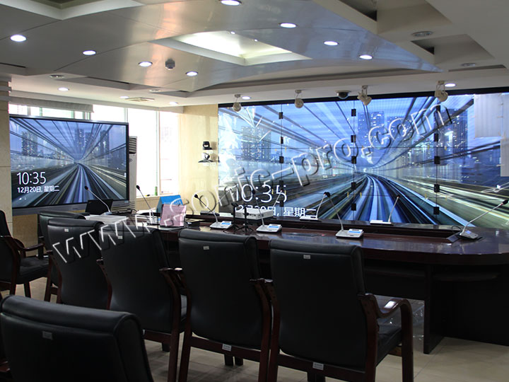 支持RS-232/485控制协议、带液晶显示,且简、繁、英三种语言可选;同时还配有一套无线手持话筒用于会议主持、流动发言、培训等功能使用,