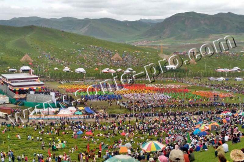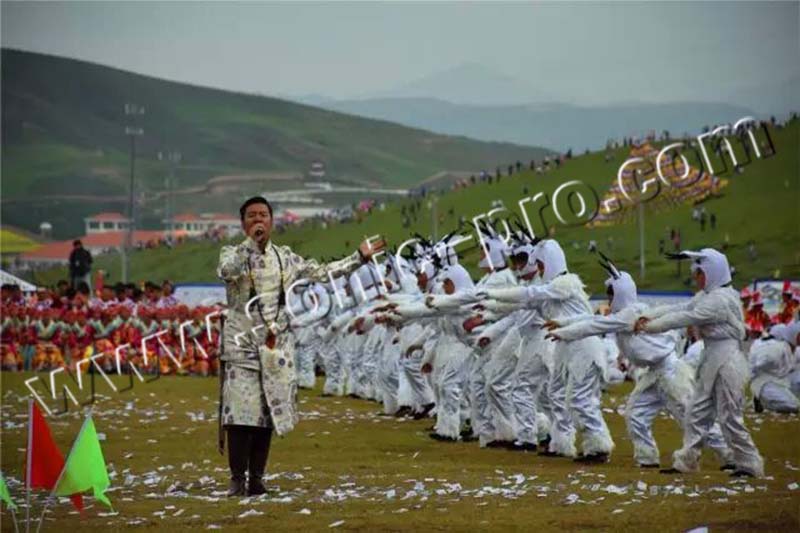 本次艺术节开幕式全套扩声音响采用SONIC PRO音响产品,四组32只LA-212双十二大型线性阵列音箱为现场扩声保驾护航。开幕式上演了精彩的文艺节目,600匹骏马、600名骑手组成的声势浩大的马队犹如一条腾飞的巨龙,从主会场飞驰而过,蹄声激昂,威武矫健的骑士再现了当年格萨尔王的英姿和雄风。藏族各式传统服饰表演《四季甘南》展示了甘南州七县一市藏族各式传统服饰,艺术地再现了生活,为广大来宾及游客展示了民族服饰璀璨夺目的光彩。藏戏传统面具舞《佛阁古韵》舞姿庄重、场面宏观,凝重独特的藏戏表演,融庄重与诙谐、演唱与对白于一体,表现手法古朴凝重,体现了高原雪域民族浓郁的文化内涵。在欢快的乐曲声中,由1400多人组成的十四个方队跳起了合作新锅庄《吉祥甘南》,动听的乐曲、飒爽的舞姿,五彩斑斓的服装,千人锅庄将开幕式推向了高潮。