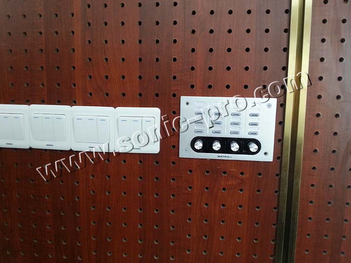 ?周边设备采用2台音频隔离器(GL-202)、数字音频矩阵处理器(MATRIX808)外接MATRIX-1控制面板,一键式操作。