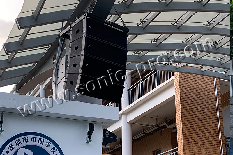 案例介绍:?学校操场扩声音响扩声,要满足日常升旗运动会广播以及演出活动需求,需考虑扬声器声场声压的均匀度和声音的清晰度。