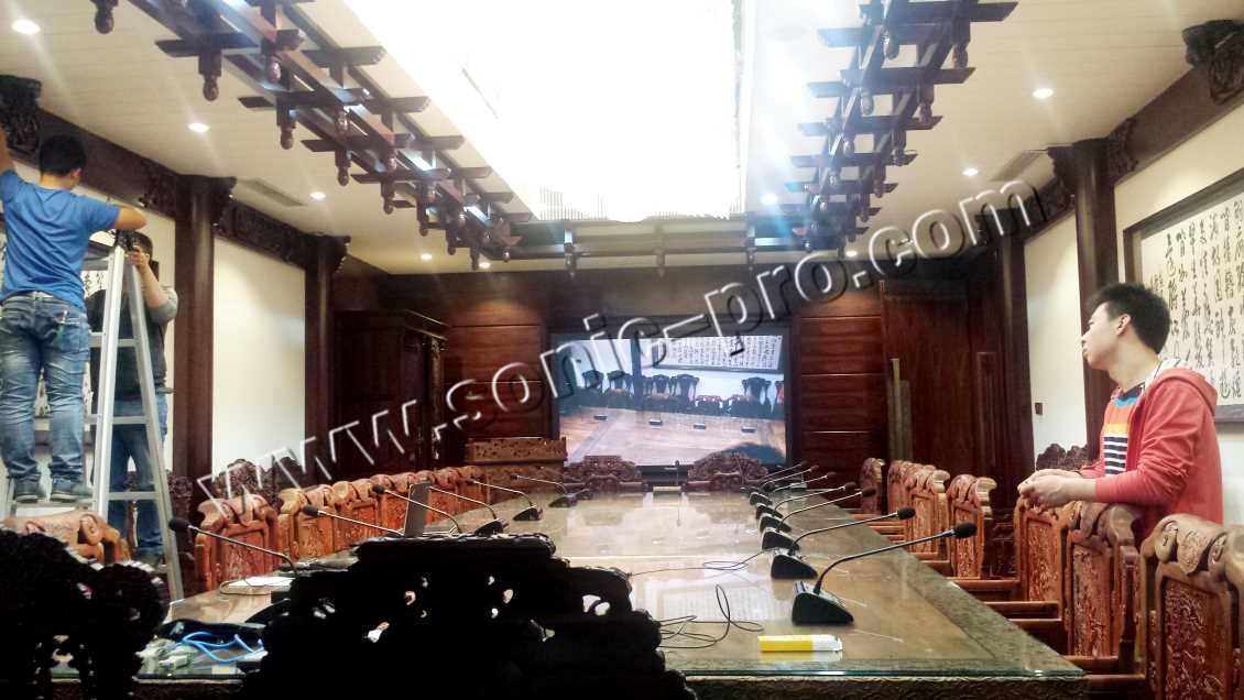 集团公司内部配有高档数字视频会议室,采用SONIC PRO品牌先进的无线红外信号传输会议系统,可以实现发言人的讨论、表决、视像跟踪等功能,为集团公司高层领导的会议提供有力保障。