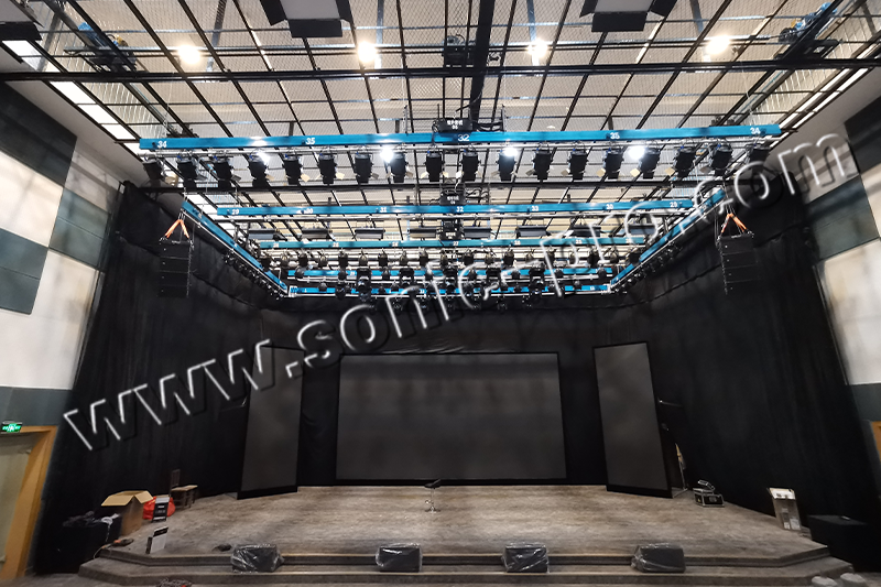 我们配置了左右主扩声音箱,一边采用四只线性阵列音箱,高品质的喇叭单元配置,提供高音顺滑,中音通透,低音饱满的扩声。?