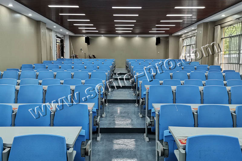 广东惠州市富民小学阶梯教室 行业:教育 应用:报告厅 地区:广东 访问次数:70 惠州市富民小学,阶梯教室音响扩声系统案例分享。 首先阶梯教室需要满足,上课,开会,演讲,报告的使用需求。 我们配置了左右主扩声音箱,高品质的喇叭单元,可以提供干净,清晰,具有穿透力的扩声。 中后场补声音箱为了保证声音的直达声,我们在中后场配置了四只补声音箱,壁挂在中后场的墙壁上,保证声场覆盖更均匀。? 我们还配置了功放,处理器,电源时序器,音频隔离器,调音台,反馈抑制器,话筒。 话筒我们配了鹅颈话筒,和手持话筒。
