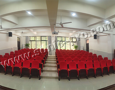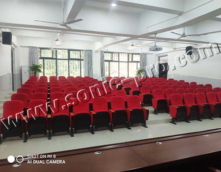 江西宜春洪江中学报告厅 行业:教育 应用:报告厅 地区:江西 访问次数:54 报告厅需要满足日常会议、报告、培训学习等多用途的使用需求。我们按照会议类扩声系统声学特性指标进行设计。 左右主扩音箱采用两只同轴音箱,声音自然、清透、更具表现力 为了保证声音的直达声,我们还配置了四只辅助补声音箱,壁挂在中后场的墙壁上。 除了音箱之外,音源部分我们配置了一套会议系统,方便流动发言使用的无线手持话筒。 我们还配置了功放,调音台,2进4出的数字音频处理器,电源时序器,反馈抑制器,由斯尼克品牌提供。 整套扩声系统设计合理,发言轻松,声音效果好,得到了用户的认可。
