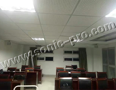 该会议室使用SONIC PRO 经典之TZ-6同轴音箱4只,同轴音箱采用点声源同轴技术,具有完全的波阵面相干性和轴对称方向性,产生完全相同的水平和垂直覆盖角度,形成真正的点声源;避免了传统的号筒高音和低频扬声器单元组合来说典型极性波瓣效应的弱点,最终的结果自然是带来录音棚级的监听音质。