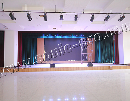 多功能厅使用特点是,面积较大,需要实现远距离,大声压的扩声