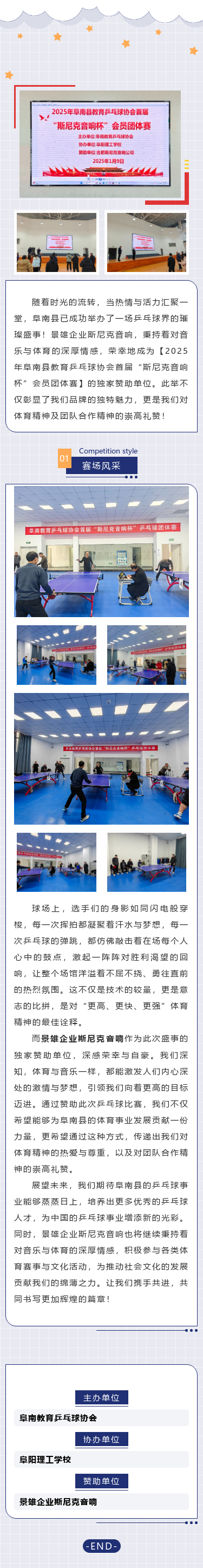 【独家赞助】2025年阜南县教育乒乓球协会首届斯尼克音响杯会员团体赛! 来源:本网原创 作者:景雄 时间:2025-01-10 10:28:00 访问次数:38 【独家赞助】2025年阜南县教育乒乓球协会首届斯尼克音响杯会员团体赛!