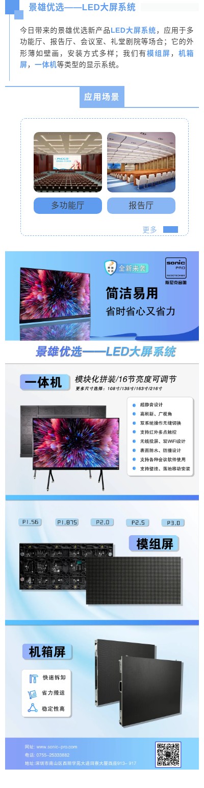 景雄优选LED大屏系统丨一款智简产品 来源:本网原创 作者:景雄 时间:2022-5-12 11:16:00 访问次数:38 景雄优选LED大屏系统丨一款智简产品- END -同的搭配,不同的效果适应不同的场合景雄企业专注产品的创新和推广倡导音视频数字网络化、系统化技术新理念国家高新技术企业知识产权贯标企业双软认证企业十大专业音响品牌十大创新音响品牌