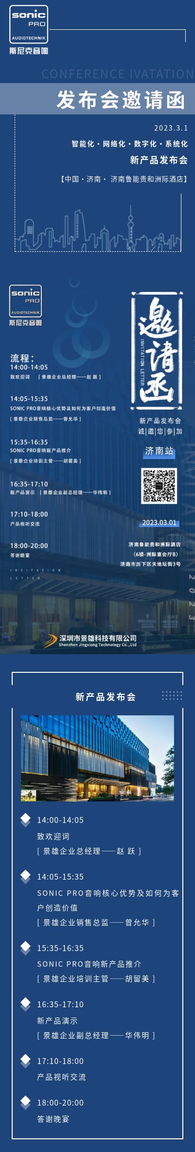 邀请函!SONIC PRO(斯尼克音响)新品发布会诚邀您的莅临 来源:本网原创 作者:景雄 时间:2023-2-13 18:40:00 访问次数:54 邀请函!SONIC PRO(斯尼克音响)新品发布会诚邀您的莅临