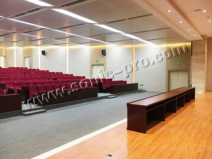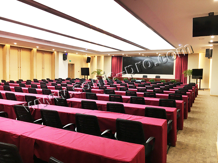 ? ? ? ? ?此次SONIC PRO音响应用于重庆农业银行的场所有两处,分别为3楼的数字化会议室和大型多功能厅。会议室可同时满足200多人进行会议,需要满足日常会议扩声需求,因此对音箱的声压级和重放的语言清晰度要求比较严格;且配有拼接大屏,因此应用的音响设备必须要能够与大屏联动使用;而多功能厅需要兼顾会议,报告,演出等多功能使用,是一个可容纳680人的大厅,相较会议室对音箱的声压级要求更高,声音需能够清晰传达到报告厅的每个角落。