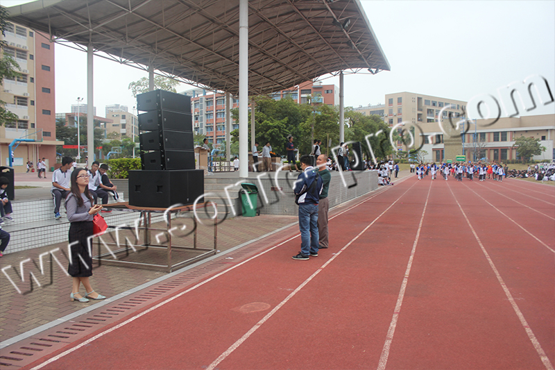 ? ? ? SONIC PRO音响全套产品助力北京师范大学东莞石竹附属学校十周年校庆暨师生表彰大会现场,音箱采用吊挂安装的LA线性音箱(LA-210),它具有较大的动态容量,能提供干净、连续、精确的高品质声音;应用相位校正以及专利线性号角技术,能忠实还原规定范围内频谱信号,音箱上装备精密的铝合金吊挂系统,音箱与音箱之间的连接角度可通过吊装件来调节,采用最新人体工程学和机械设计,使整个系统安装简易快捷并保证了安全。低音音箱采用SUB系列(SUB-218),再加上同轴系列音箱(TZ-18),使声音更深沉、具有爆发力,更适合表彰大会现场氛围。功率放大器采用具有国家专利设计的MA系列功放(MA-210K、MA-215K),搭配音频处理器(MATRIX408),GL-32调音台,再搭配一系列周边电子设备(均衡器AC03、反馈抑制器DGL2408、效果器AC08、电源时序器CS-10等)。