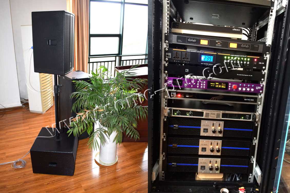 客户要求满足会议、看电影、K歌等功能。此外,由于该会议室中置音箱安装空间狭小,对中置音箱的尺寸有着严格的要求。