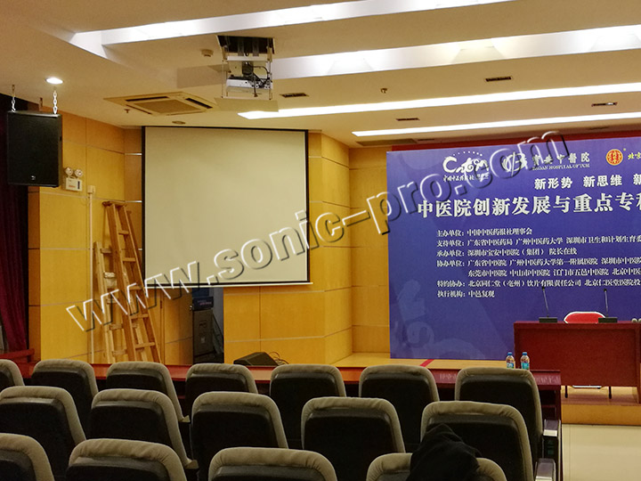 为了更好的实现学术交流和丰富医疗人员的文化活动,宝安中医院15楼多功能厅及8楼会议室扩声系统由SONIC PRO(斯尼克)音响全力打造。