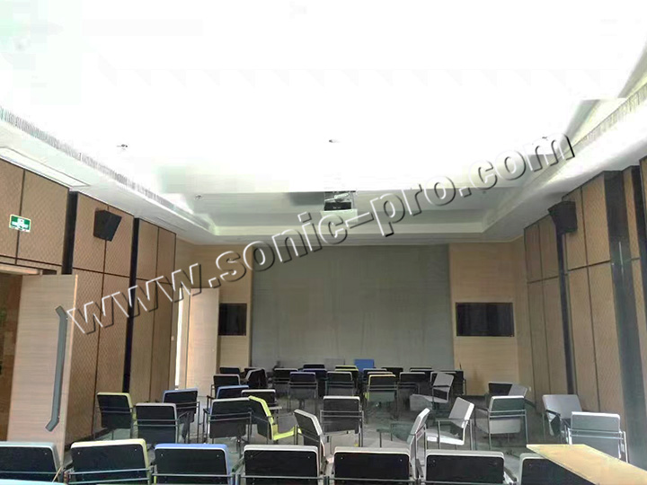 ? ? ? ?(I)报告厅部分(5.1声道)主扩声音箱、中置采用FTH-803线性音柱加持,小箱体、大功率,适合隐藏式安装;超低部分采用1只双12寸低音FSUB-212,