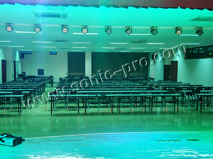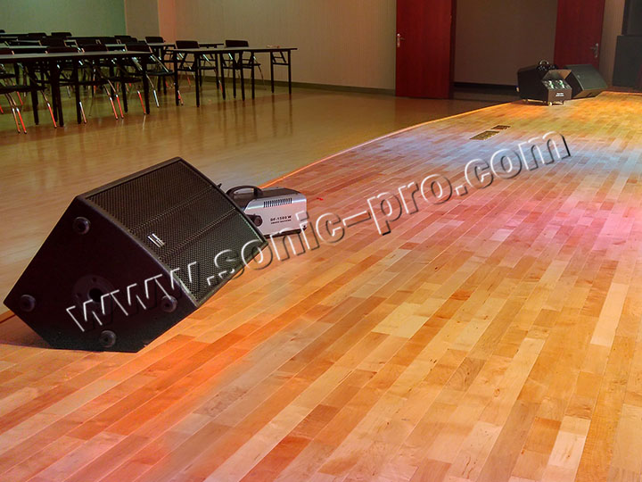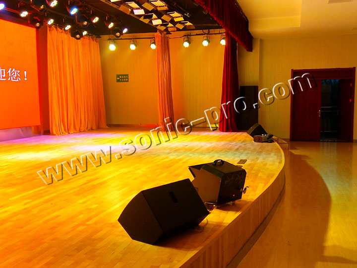 此次宿迁市老年大学多功能厅扩声系统全部采用SONIC PRO(斯尼克)音响产品。其中主扩部分采用2只十八寸同轴全频音箱(TZ-18);