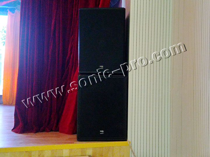 舞台返听音箱及后场补声音箱分别采用了十二寸全频音箱(K-12)及十寸全频音箱(K-10),低音采用了2只具有超大动态的双十八寸低音炮(SUB-218),低音饱满而有力度。
