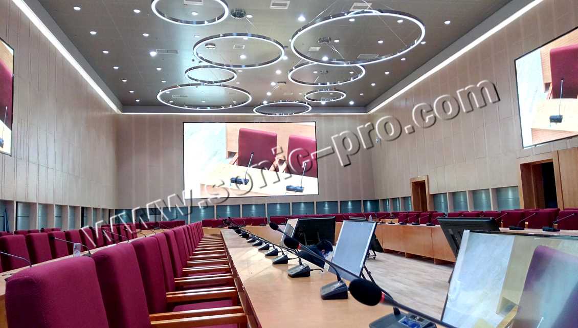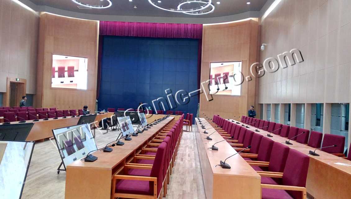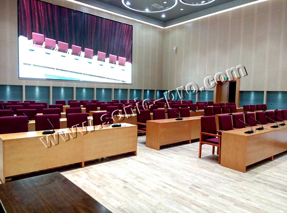 手拉手会议系统采用带摄像跟踪、讨论功能的TL3000,和高清摄像球(TL-S02)实现视像跟踪功能,使用到一百多只桌面式话筒,通过技术处理,很好的解决了话筒供电及啸叫问题。