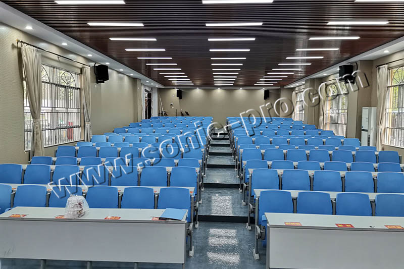 广东惠州市富民小学阶梯教室 行业:教育 应用:报告厅 地区:广东 访问次数:29 惠州市富民小学,阶梯教室音响扩声系统案例分享。 首先阶梯教室需要满足,上课,开会,演讲,报告的使用需求。 我们配置了左右主扩声音箱,高品质的喇叭单元,可以提供干净,清晰,具有穿透力的扩声。 中后场补声音箱为了保证声音的直达声,我们在中后场配置了四只补声音箱,壁挂在中后场的墙壁上,保证声场覆盖更均匀。? 我们还配置了功放,处理器,电源时序器,音频隔离器,调音台,反馈抑制器,话筒。 话筒我们配了鹅颈话筒,和手持话筒。
