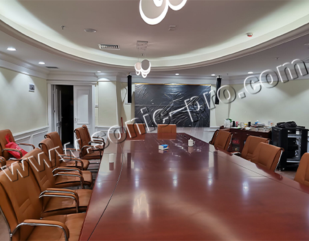 左右主扩声音箱,采用线性音柱来进行扩声,线性音柱喇叭采用小尺寸的钕磁单元,加上两分频号角的设计,尤其在会议人声可以完美还原,让发言人在开会时声音更通透,讲话轻松。