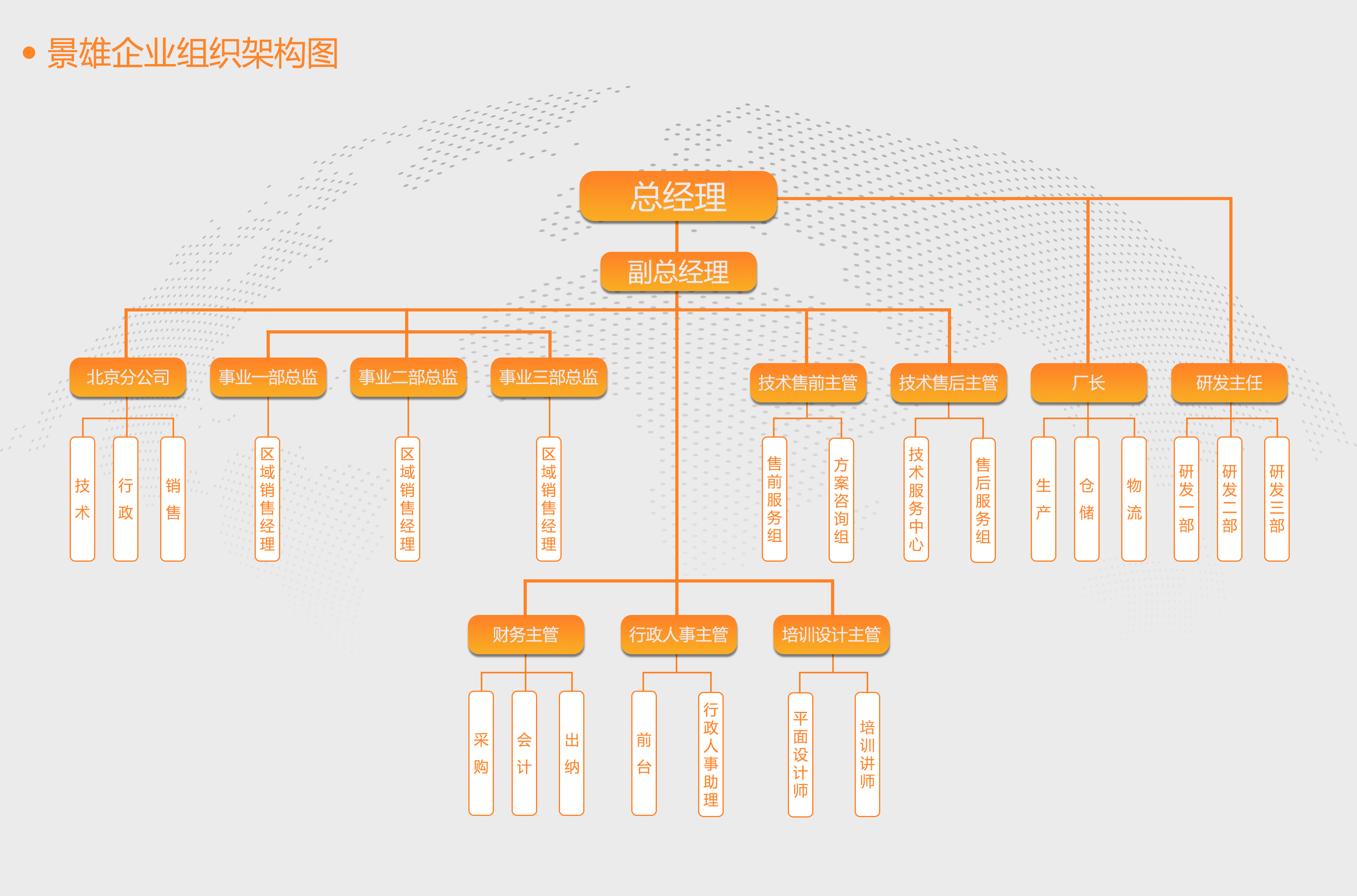 景雄企业总部位于深圳,目前已经在北京和成都成立分公司,上海办事处、合肥运营中心、南京、兰州、重庆、厦门、南昌、西安、武汉、杭州、郑州、贵阳成立直属技术服务中心。通过全国技术服务中心的设立,将景雄企业专业完善的技术和商务服务前移市场,快速响应客户和市场的需求,为客户提供全方位高质量的商务和技术支持服务。